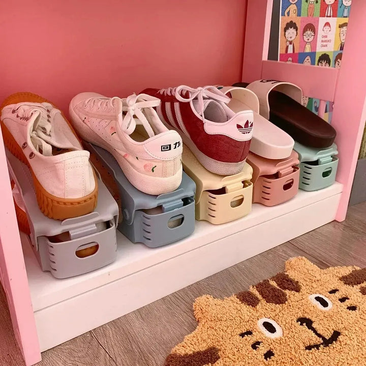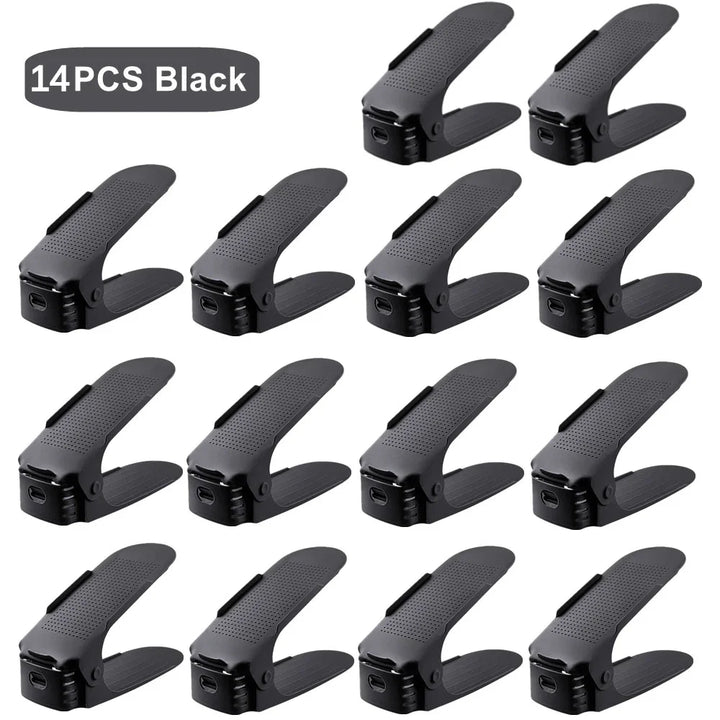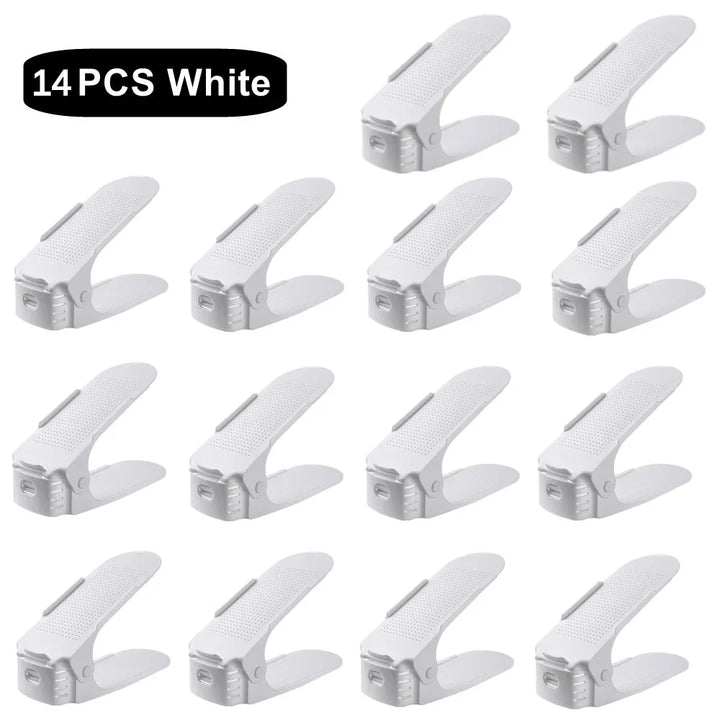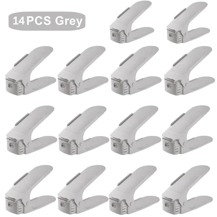 · 【GEEIGNET FÜR ALLE SCHUHTYPEN】 Verstellbare Schuhfächer in 4 Positionen, einstellbare Höhen von 2,7 Zoll bis 7,2 Zoll, bieten den richtigen Platz für Ihre flachen Schuhe, Hausschuhe, Turnschuhe, Lederschuhe, Kinderschuhe und High Heels und schützen Ihre Schuhe vor Druck oder Beschädigung. Bringen Sie Ordnung in Ihren überfüllten Kleiderschrank und verstauen Sie mehr Schuhe.