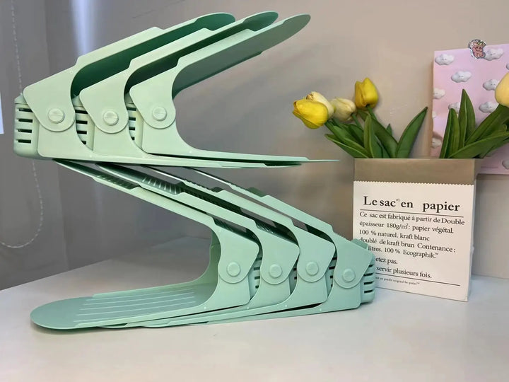 · 【VERBESSERTE QUALITÄT UND GARANTIE】 Der Schuhstapel besteht aus hochwertigem und langlebigem, grünem, ungiftigem PP-Kunststoff, der eine längere Lebensdauer und eine höhere Tragfähigkeit aufweist. Er wird durch starken Druck oder häufigen Gebrauch nicht beschädigt.