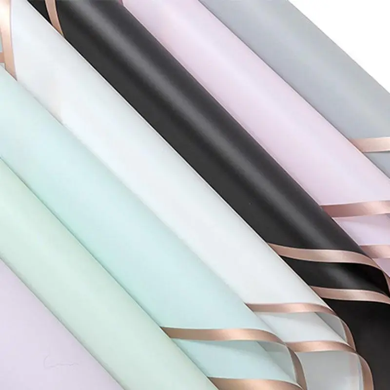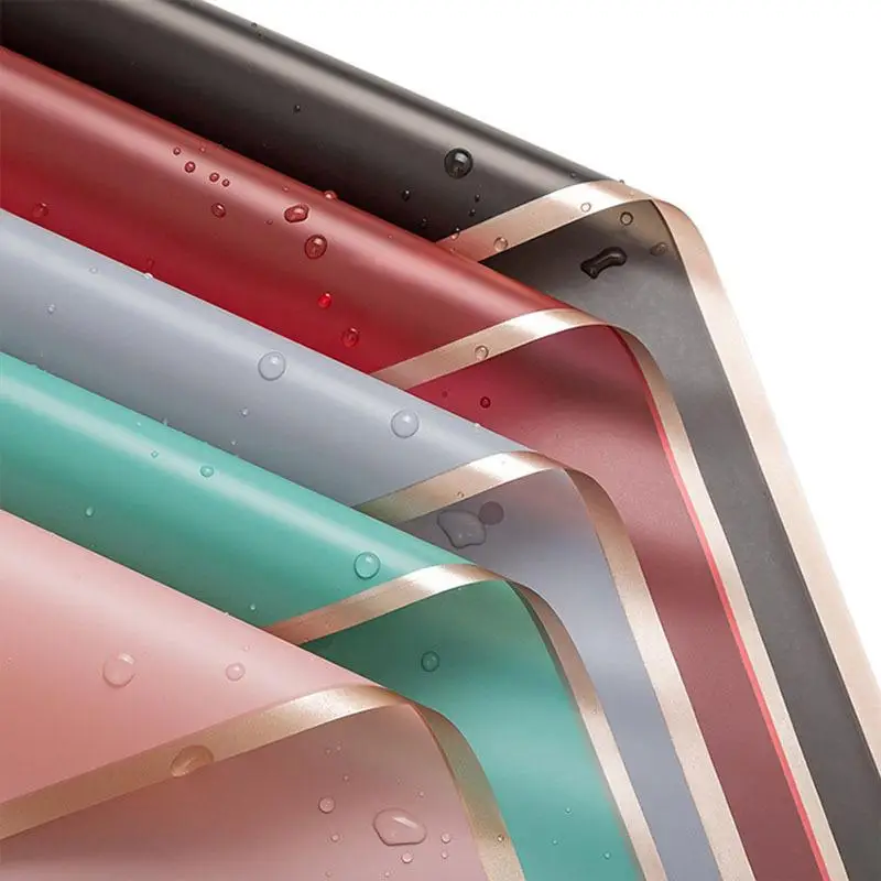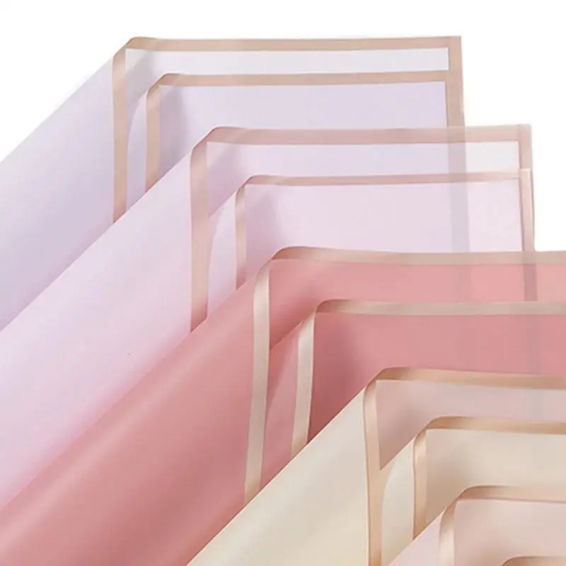 5pcs/Pack Flower Wrapping Paper Golden Border Rose Korean Style Half Transparent Gift Packing Florist Bouquet Wrapping Material